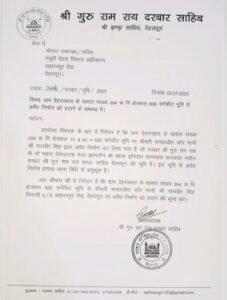 देहरादून। मसूरी देहरा विकास प्राधिकरण और ज़िला प्रशासन की निष्क्रियता पर गंभीर प्रश्न उठाते हुए श्री गुरु राम राय दरबार साहिब प्रबंधन ने ग्राम देहराखास स्थित अपनी 600 वर्गफीट भूमि पर हुए अवैध निर्माण को तत्काल हटाने की मांग की है। प्रबंधन का आरोप है कि अवैध कब्जा हटाने के लिए मसूरी देहरा विकास प्राधिकरण को पत्र दिए जाने और आवश्यक प्रलेख उपलब्ध कराए जाने के बावजूद कोई कार्यवाही नहीं हो रही है। कमलजीत कौर पत्नी श्री राजवीर सिंह ने ग्राम देहराखास (खाता संख्या 00637), खसरा संख्या 294 क मि पर लगभग 600 वर्गफीट (15 गुणा 40) क्षेत्र पर अवैध निर्माण किया हुआ है। यह भूमि दरबार श्री गुरु राम राय झंडा साहिब देहरादून की है। भूमि अभिलेख (भूलेख/खतौनी) में भी दरबार साहिब का उल्लेख है। श्री गुरु राम राय दरबार साहिब के व्यवस्थापक ने मसूरी देहरा विकास प्राधिकरण के उपाध्यक्ष/सचिव को पांच जुलाई को एक पत्र लिखकर इस अवैध निर्माण को हटाने का निवेदन किया था कि ग्राम देहराखास के खसरा संख्या 294 क मि क्षेत्रफल 600 वर्गफीट भूमि से अवैध निर्माण को हटाने के संबंध में। इससे पूर्व भी 16 अप्रैल 2024 को शिकायत दर्ज कराई गई थी। स्थानीय निवासियों द्वारा शिकायत करने पर मसूरी देहरा विकास प्राधिकरण ने 11 जून 2024 को अवैध कब्जाधारक का चालान भी किया था। इसके बावजूद, अब तक मौके पर कोई ध्वस्तीकरण कार्यवाही नहीं की गई है। स्थानीय शिकायतकर्ताओं (राजकुमार छाबड़ा, मीनाक्षी कश्यप, अमरजीत कोहली) का कहना है कि मसूरी देहरा विकास प्राधिकरण के अधिकारियों, विशेष रूप से कनिष्ठ अभियंता ने खसरा संख्या मांगे जाने के बावजूद कार्यवाही नहीं की, जिससे न केवल अवैध कब्जा बरकरार है, बल्कि कब्जाधारियों ने अब तिरपाल लगाकर आगे की भूमि पर भी अतिक्रमण का का विस्तार कर रही है। यह प्रकरण धार्मिक संस्था की भूमि पर अवैध कब्जा और नियामक संस्था की लचर कार्यप्रणाली का एक ज्वलंत उदाहरण बन गया हैl